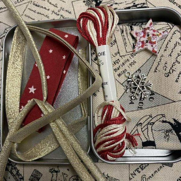Notre célèbre petite boite métallique remplie de petites merveilles...Au programme, fils AU VER A SOIE et autre fournitures...